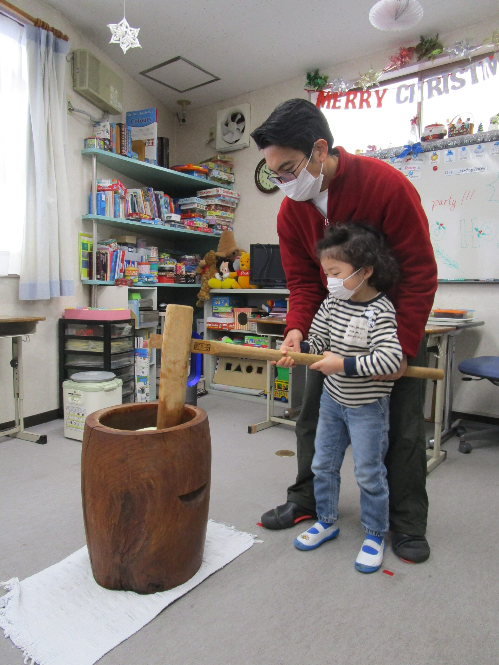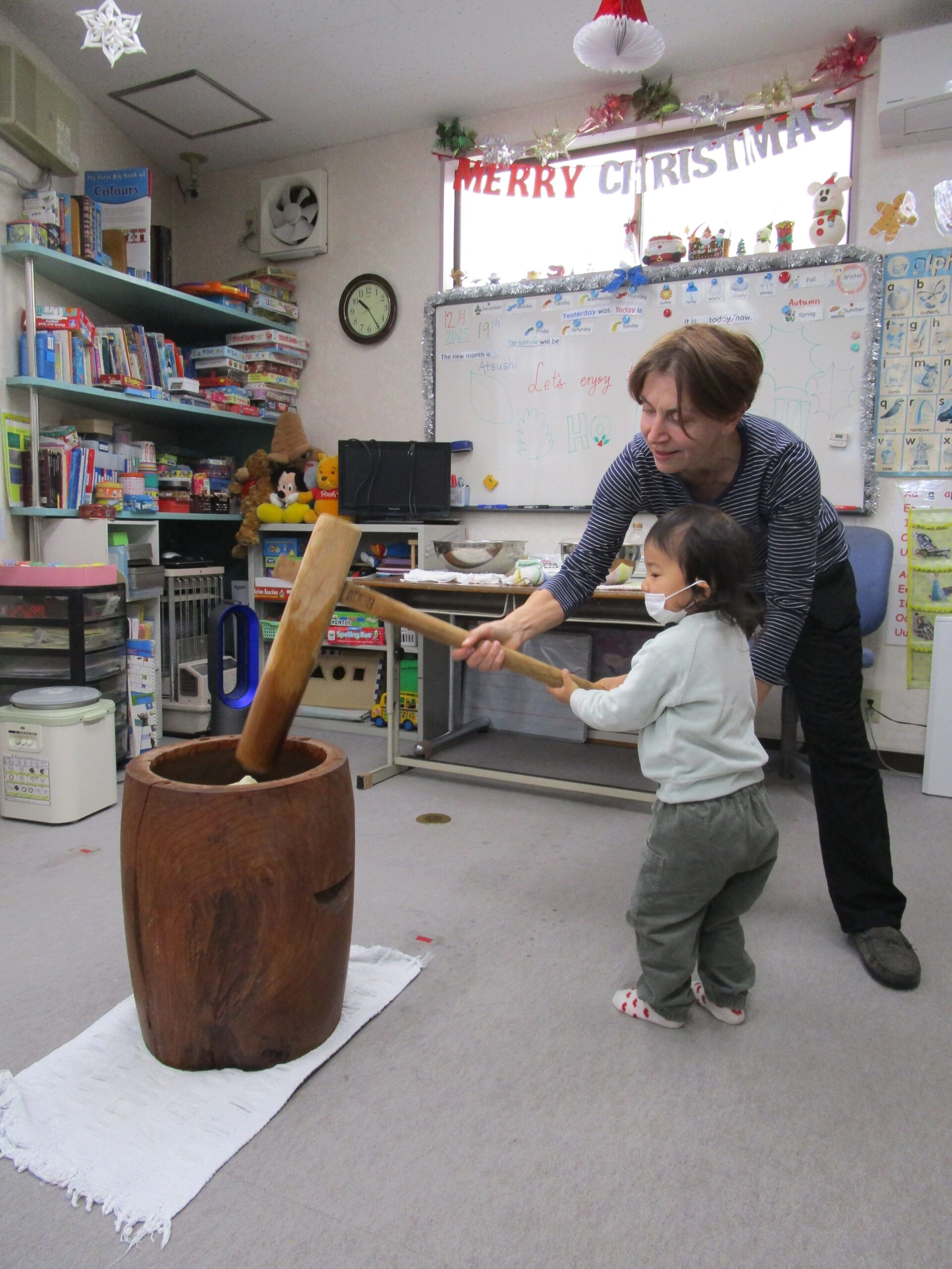2025/12/22 / 最終更新日時 : 2026/01/16 kentos ケントスブログ 2025年 Rice Pounding 今年も残すところあと10日となりました。今日は当プリスクールでお餅つきを行いました。先生と一緒に臼と杵を使って一生懸命お餅を作りました。お米がお餅になっていく様子に興味津々の子どもたち。ついたお餅はお家へお持ち帰りで、家族のみんなと一緒にいただきました。 Follow me! FacebookXBlueskyHatenaCopy